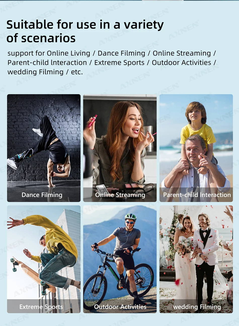support for Online Living / Dance Filming / Online Streaming / Parent-child lnteraction / Extreme Sports / Outdoor Activities / wedding Filming / etc.