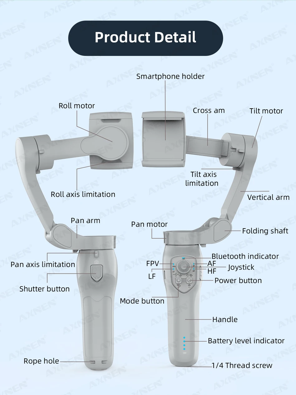 4. Before turning on gimbal, please install phone and center it first, please dont turn on gimbal without phone installed.